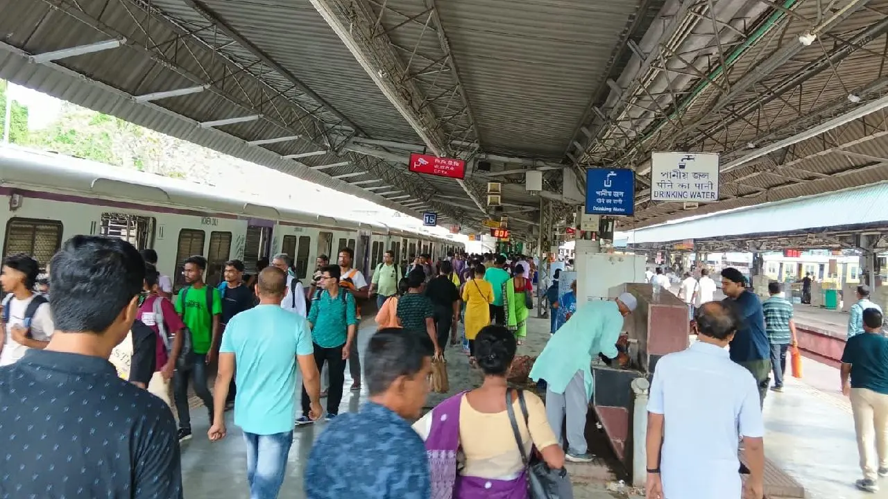 ভোটের সকালের শিয়ালদহ স্টেশন। তুলনায় ভিড় কম।