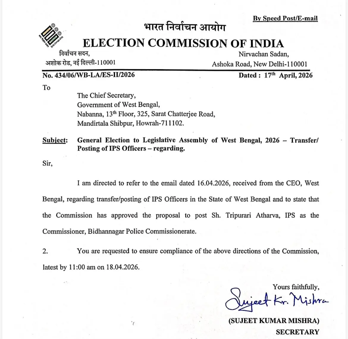 মার্চ মাসে ভোটের নির্ঘণ্ট ঘোষণার পরেই সরিয়ে দেওয়া হয় রাজ্য পুলিশের ডিজি পীযূষ পাণ্ডে ও কলকাতার পুলিশ কমিশনার সুপ্রতিম সরকারকে সরিয়ে দেয় নির্বাচন কমিশন। রাজ্য পুলিশের নতুন ডিজি করা সিদ্ধনাথ গুপ্তকে। কলকাতা পুলিশের নতুন কমিশনার করা অজয় কুমার নন্দাকে। গত ১৪ এপ্রিল বেলডাঙা থানার আইসি’কে সরিয়ে দিয়েছে কমিশন। বেলডাঙা থানার নতুন আইসি করা হল আশুতোষ রাইকে। তিনি হাওড়া পুলিশ কমিশনারেটের ইনস্পেক্টর ছিলেন। সম্প্রতি বেলডাঙার এসডিপিও বদল করা হয়েছিল।