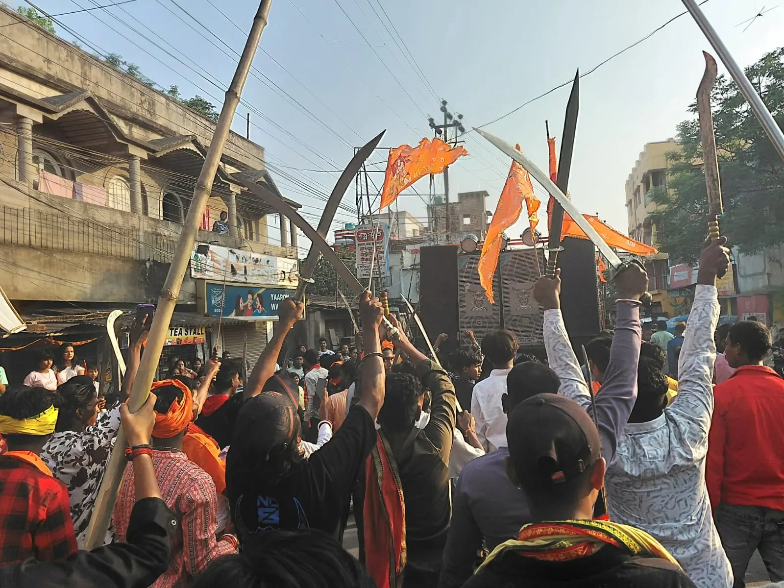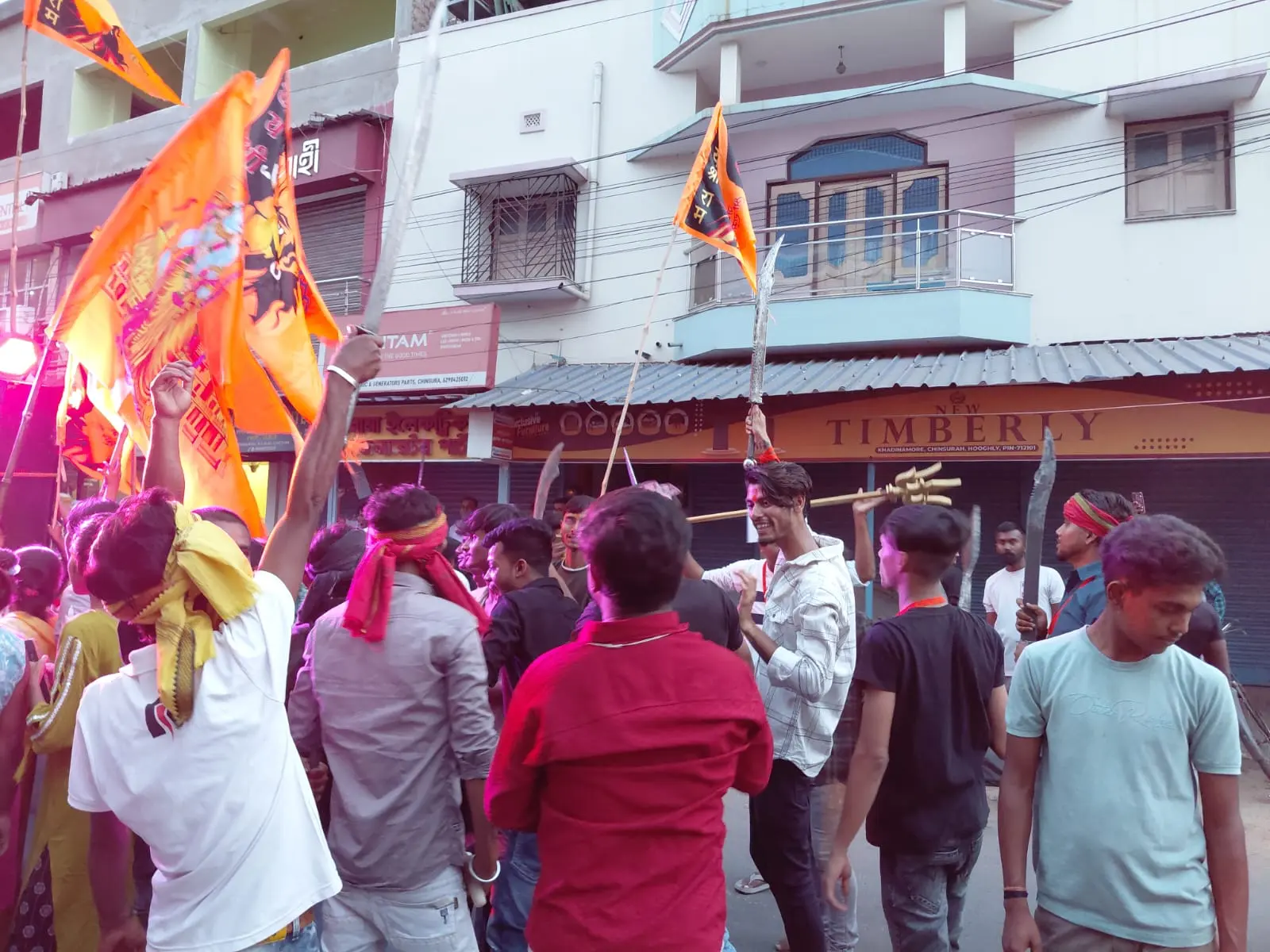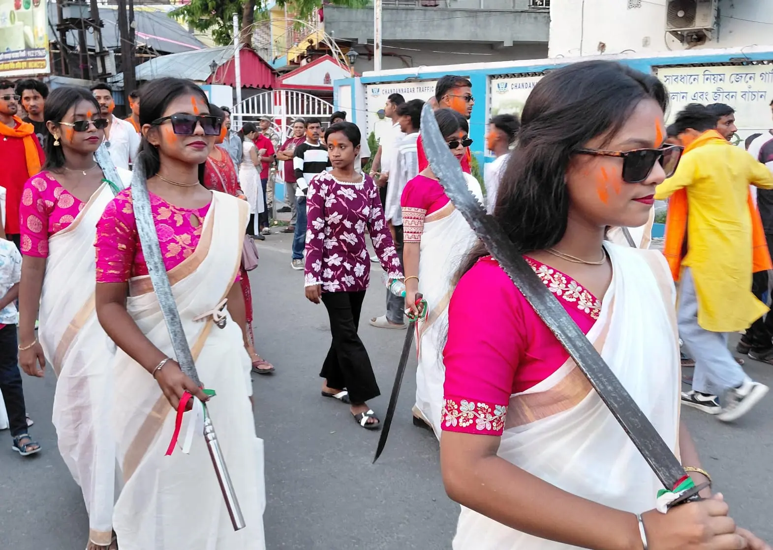 সামনের সারিতে দেখা গেলো চুঁচুড়ার বিজেপি প্রার্থী সুবীর নাগকে। পাশাপাশি অস্ত্র হাতে মিছিলে দেখা যায় হাওড়া হুগলি বিভাগের জয়েন্ট কনভেনর সুরেশ সাউকে। মিছিলে একাধিক মহিলার হাতেও দেখা যায় অস্ত্র। অস্ত্রের ঝলকানির পাশাপাশি তারস্বরে ডিজে বক্স বাজতেও দেখা যায়। মিছিলে অস্ত্র হাতে থাকা মহিলা নমিতা কুন্ডু বলেন, "ত্রিশূল আমাদের সহ্যর প্রতীক। এগুলি হিন্দু ধর্মের শক্তির প্রতীক। হিন্দু ধর্ম দিকে দিকে নিপিড়িত হচ্ছে। দেবী দুর্গার এই অস্ত্র আমরা সকল মা, বোনেদের হাতে তুলে দিতে চাই। আত্মসম্মান রক্ষার জন্য এই ত্রিশূলের প্রয়োজন আছে। এই বাংলায় রাম রাজ্য প্রতিষ্ঠা হবে। আমরা অভয়া কাণ্ড দেখেছি। অভয়ার মা কত কষ্ট পেয়েছে। তাই চাইবো আর যাতে কেও অভয়া না হয়। সকল মা বোনেদের বলবো আপনারা আসুন অস্ত্র তুলে নিন, শত্রুদের বিনাশ করুন।"