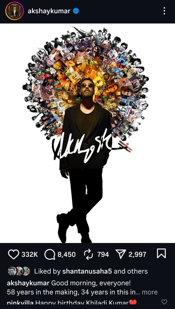 পোস্টে অক্ষয় কৃতজ্ঞতা জানিয়েছেন শিল্পী রাহুল নন্দাকে, যিনি তাঁর পুরো ফিল্মি জীবনের কোলাজ এঁকেছেন। তিনি লিখেছেন, “আমার প্রিয় মানুষগুলো— ভক্তদের জন্য— আমার সারা জীবনের কাজকে তুলে ধরার জন্য ধন্যবাদ, রাহুল নন্দা।”