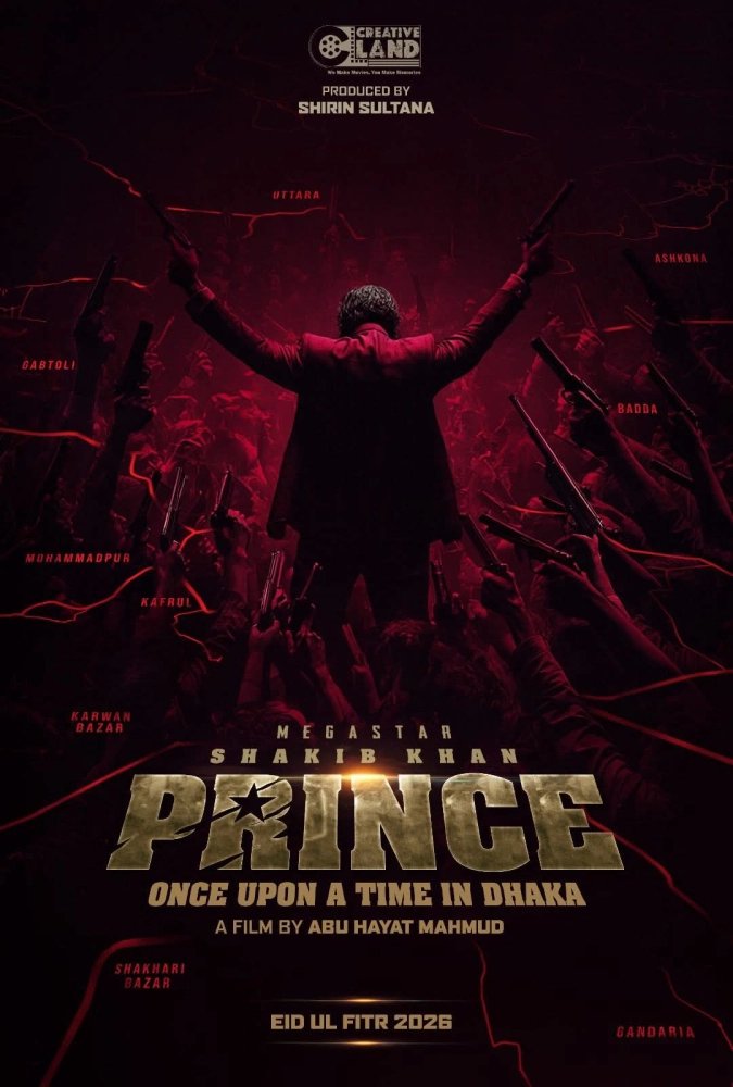 বাংলাদেশি সিনেমার সুপারস্টার শাকিব খান মানেই ঈদের পর্দায় বিশেষ চমক। এবারও তার ব্যতিক্রম ঘটছে না। শুক্রবার বাংলাদেশের অন্যতম জনপ্রিয় তারকা শাকিব খান প্রকাশ করলেন তাঁর আসন্ন ছবি 'প্রিন্স'-এর ফার্স্ট লুক পোস্টার। ২০২৬ সালের ঈদের আবহে মুক্তি পাবে এই ছবি। ‘প্রিন্স: ওয়ান্স আপন এ টাইম ইন ঢাকা’–এর মোশন পোস্টার ঘিরে ইতিমধ্যেই হইচই শুরু করেছেন শাকিব-ভক্তরা।