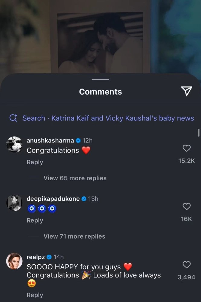 বলিউডের অন্যতম প্রিয় জুটি ক্যাটরিনা কইফ এবং ভিকি কৌশল এবার প্রস্তুত তাঁদের জীবনের নতুন অধ্যায়ের জন্য— ঘরে আসছে প্রথম সন্তান। এই সুখবর প্রকাশ্যে আসতেই ভক্তরা খুশির ঢেউতে ভাসলেন। অভিনেতা–অভিনেত্রীদের বলিপাড়ার সহকর্মীরাও জানালেন শুভেচ্ছা। দীপিকা পাড়ুকোন, অনুষ্কা শর্মা এবং প্রীতি জিন্টা ভিকি-ক্যাটের জীবনের আসন্ন নয়া অধ্যায়ের জন্য আন্তরিক অভিনন্দন জানিয়েছেন।