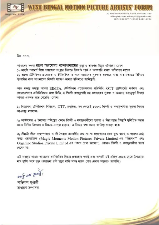 যতদিন না ম্যাজিক মোমেন্টস প্রযোজনা সংস্থার তরফে কোনও আশানুরূপ জবাব পাওয়া যাচ্ছে, কিংবা কোর্টের তরফ থেকে কোনও নির্দেশ আসছে, ততদিন পর্যন্ত এই প্রযোজনা সংস্থার সঙ্গে কাজ করা হবে না বলেই জানিয়েছে আর্টিস্ট ফোরাম৷