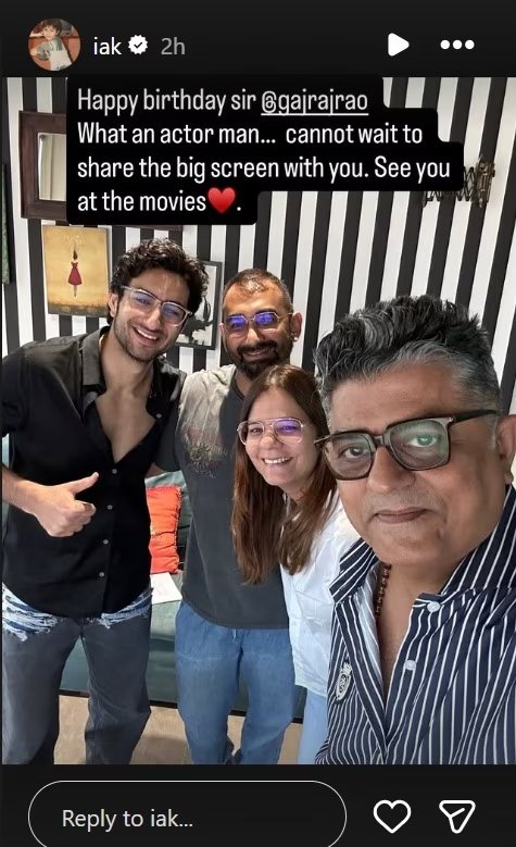 গজরাজ রাওয়ের জন্মদিনে নতুন ছবির আভাস দিলেন ইব্রাহিম আলি খান? অনুরাগীরা অন্তত তাই মনে করছেন। এদিন একটি ছবি ভাগ করে ইব্রাহিম গজরাজ রাওকে জন্মদিনের শুভেচ্ছা জানিয়ে লেখেন, 'শুভ জন্মদিন স্যার। কী দুর্দান্ত অভিনেতা আপনি! আপনার সঙ্গে স্ক্রিন শেয়ার করার জন্য তর সইছে না। দ্রুত বড়পর্দায় দেখা হচ্ছে।' 'নাদানিয়ান' এবং 'সরজামিন' ছবির পর ইব্রাহিম আলি খানকে 'দিলের' ছবিতে দেখা যাবে। সেই ছবিটি দীনেশ বিজনের ম্যাডক ফিল্মস প্রযোজনা করেছে। 'দিলের' ছবিটির পরিচালনা করেছেন কুণাল দেশমুখ। তবে গজরাজ রাওয়ের সঙ্গে তাঁকে কোন ছবিতে বা কবে দেখা যাবে সেটা খোলসা করেননি সইফ পুত্র।
