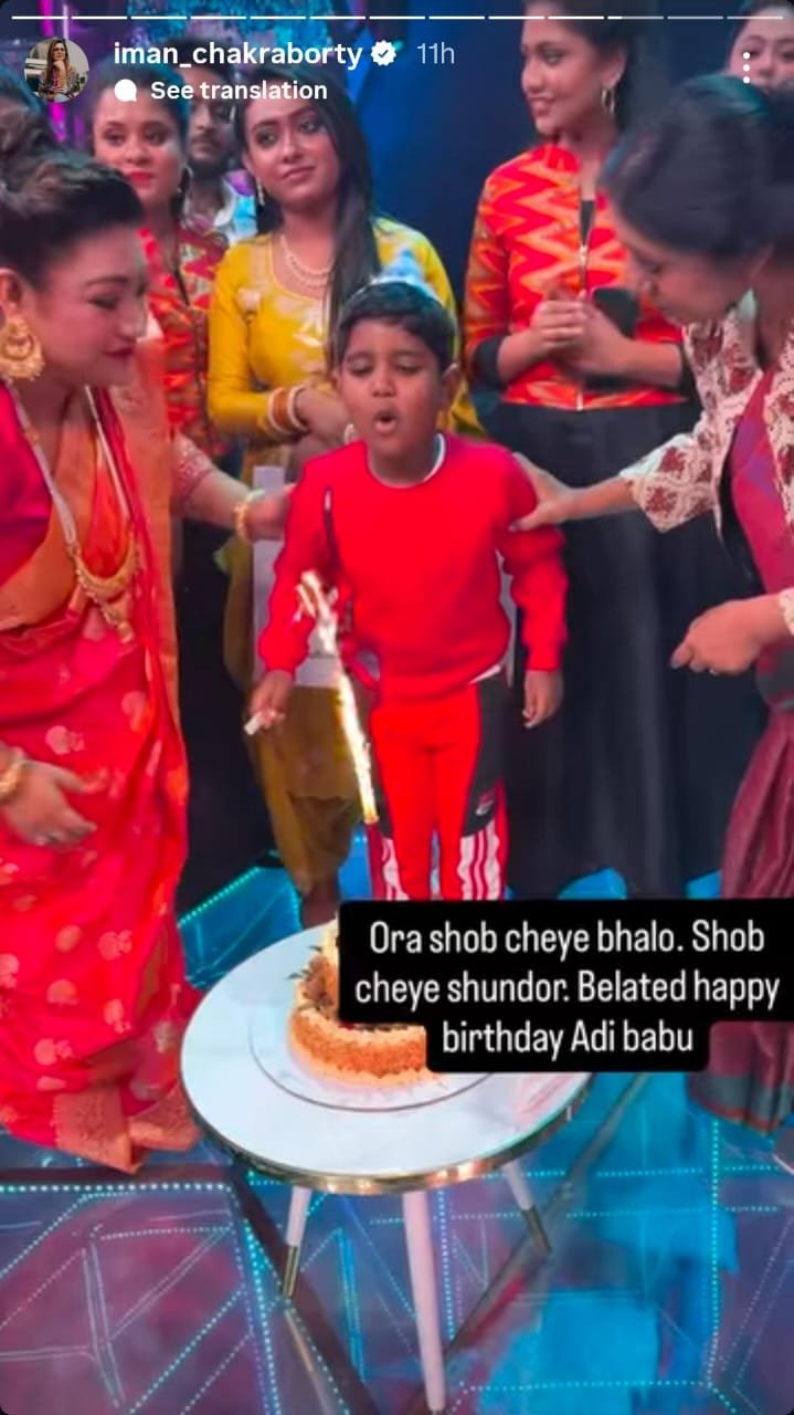 ইমনও এদিন আদির জন্মদিনের একটি ভিডিও ইনস্টাগ্রাম স্টোরিতে শেয়ার করেন। লেখেন, 'ওরা সব চেয়ে ভাল। সব চেয়ে সুন্দর। বিলেটেড হ্যাপি বার্থডে আদি বাবু।' তিনি এদিন আরও লেখেন, 'ইমন মাসি তোমাকে ভালবাসে। অনেক বড় হও বাবা। অনেক ভাল মানুষ হও।' প্রসঙ্গত জোজো যে পোস্টটি করেছেন সেখানে আদীপ্তকে রূপম ইসলাম, শুভমিতা বন্দ্যোপাধ্যায়, ইমন চক্রবর্তীর সঙ্গে ছবি তুলতে দেখা গিয়েছে।