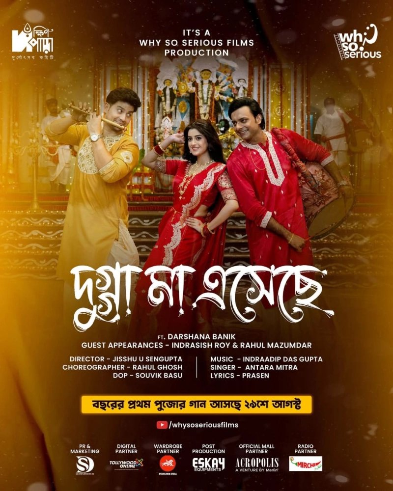 এবার পরিচালকের আসনে যিশু সেনগুপ্ত। দুর্গাপুজোর প্রায় এক মাস বাকি, তার আগেই পুজোর গান নিয়ে আসছে যিশু সেনগুপ্ত ও সৌরভ দাসের প্রযোজনা সংস্থা 'হোয়াই সো সিরিয়াস'। যেখানে পরিচালনার আসনে রয়েছেন যিশু সেনগুপ্ত। ইন্দ্রদীপ দাসগুপ্তের সুর অন্তরা মিত্রর কন্ঠে শোনা যাবে পুজোর গান 'দুগ্গা মা এসেছে'। গানটির কথা লিখেছেন প্রসূন। এই গানে প্রধান মুখ হিসাবে রয়েছেন অভিনেত্রী দর্শনা বণিক। এছাড়াও থাকছেন ইন্দ্রাশিস রায় ও রাহুল মজুমদার।