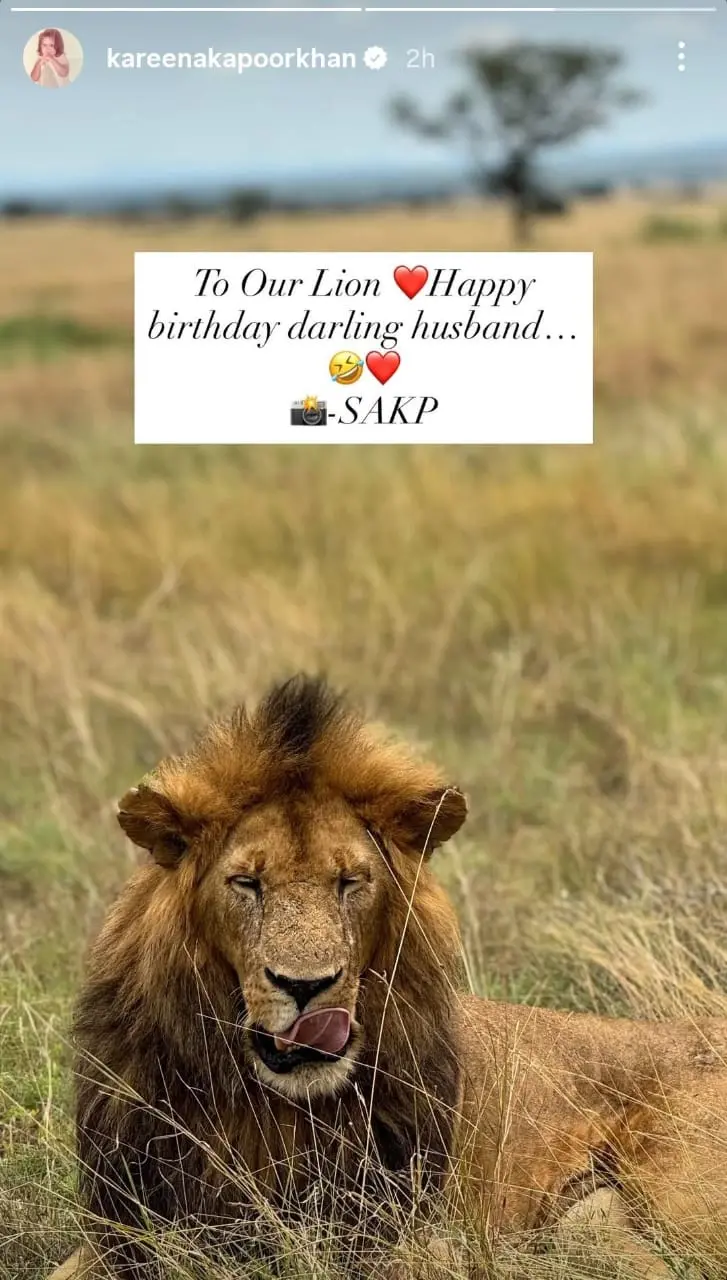 সমাজমাধ্যমে একটি সিংহের ছবি ভাগ করেছেন করিনা কাপুর খান। সইফকে জন্মদিনের শুভেচ্ছা জানিয়ে তিনি লিখেছেন, 'তুমি আমাদের কাছে সিংহের মতো। শুভ জন্মদিন আমার ডার্লিং হাজবেন্ড।'
