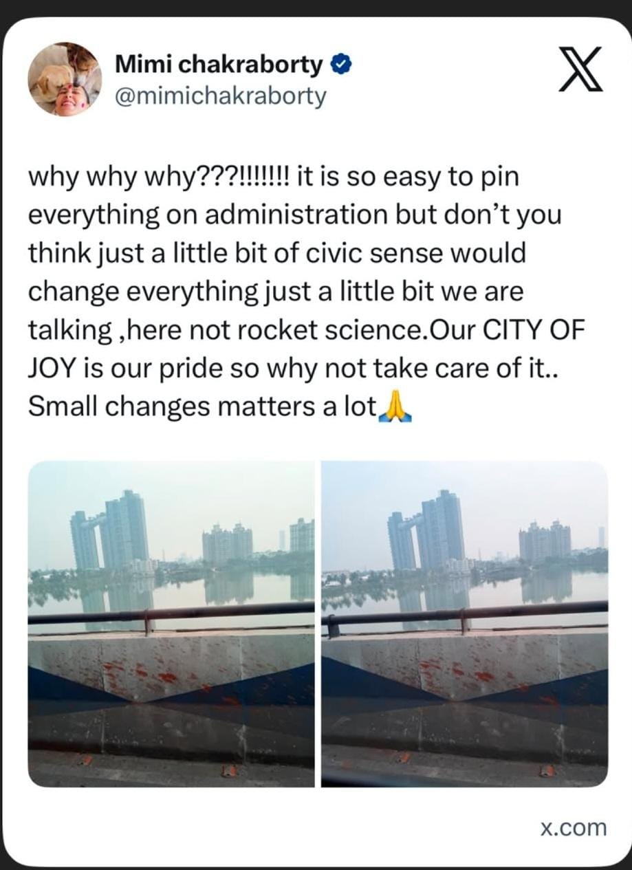 কেবল ছবি বা কাজ নয়, শহর থেকে সারমেয়, বিভিন্ন বিষয়ে মিমি চক্রবর্তী বরাবরই সরব হয়েছেন প্রয়োজন। এদিনও তার অন্যথা হল না। সহনাগরিকদের কাণ্ডকারখানা দেখে অভিনেত্রী দারুণ ক্ষুব্ধ হন, তার কারণ সহ ছবি সবটাই সমাজমাধ্যমে তুলে ধরেন।