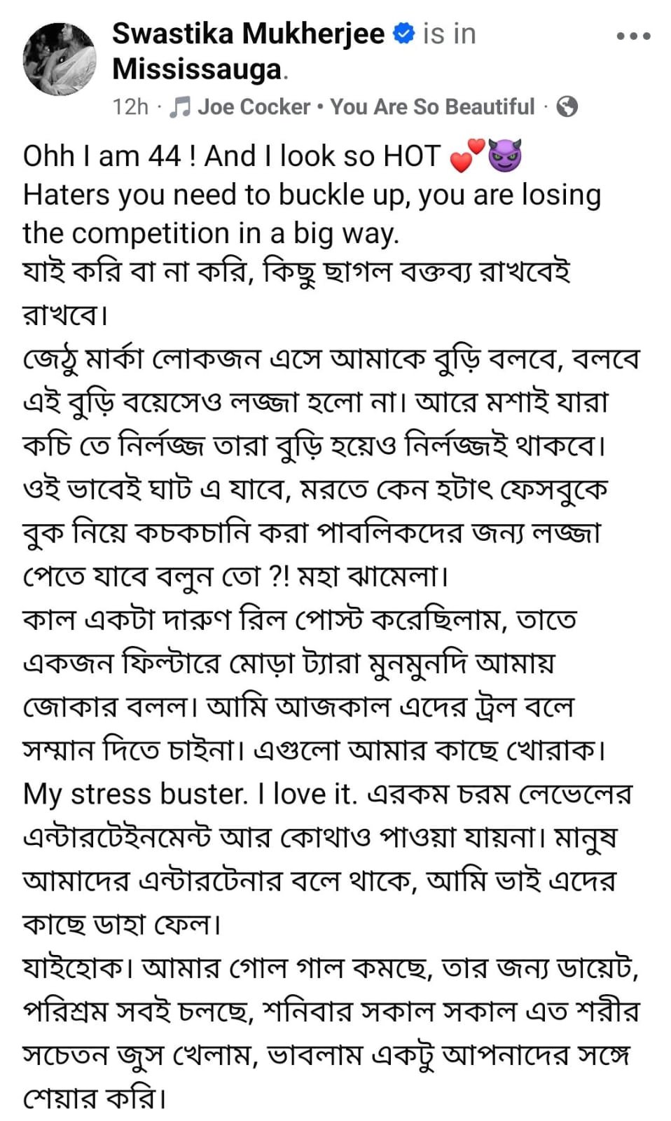 রইল স্বস্তিকার গোটা পোস্টটি -