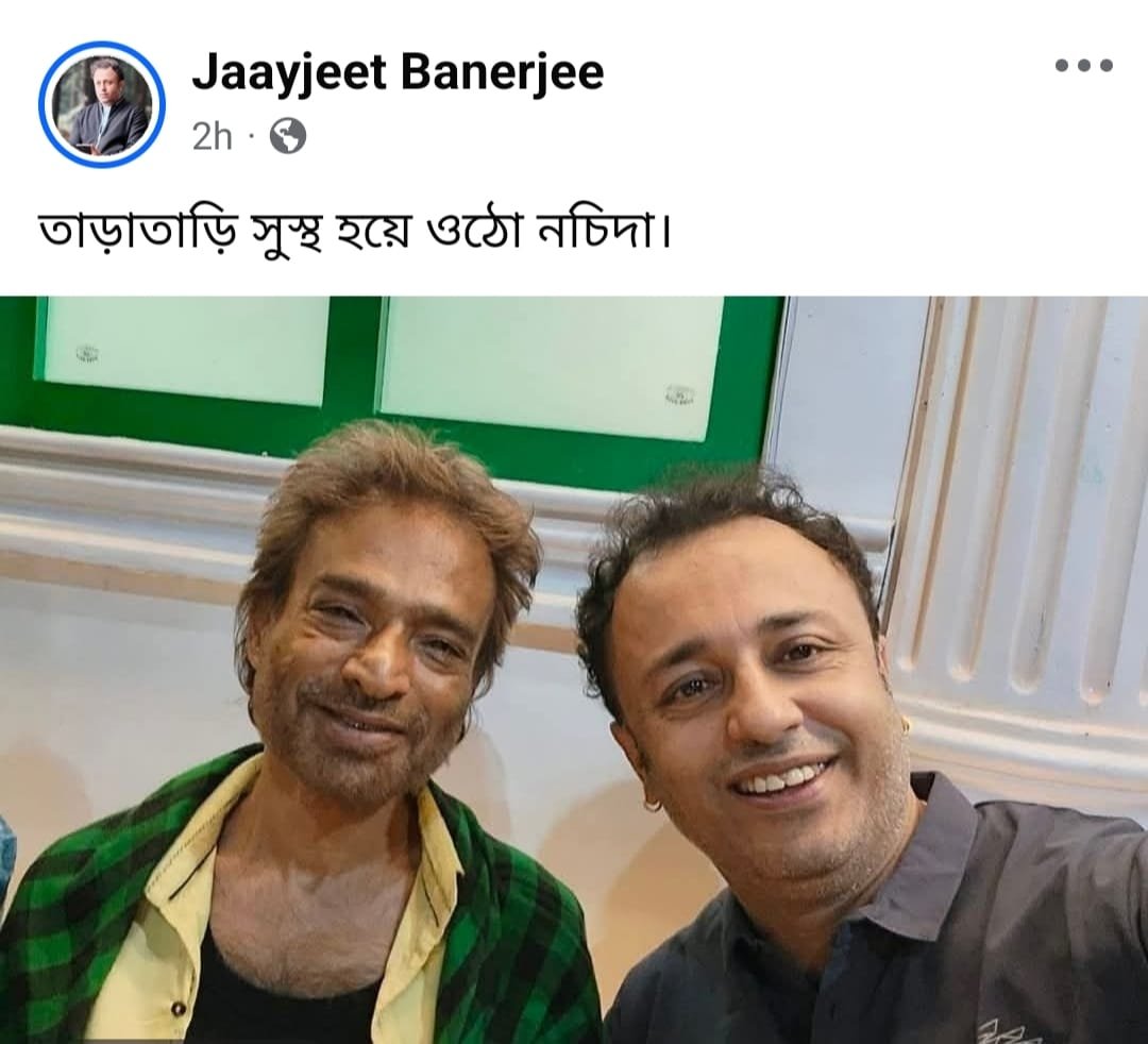 নচিকেতার সঙ্গে সমাজমাধ্যমে একটি ছবি পোস্ট করে অভিনেতা জয়জিৎ বন্দ্যোপাধ্যায় লিখলেন, “সুস্থ হয়ে ওঠো নচিদা।”