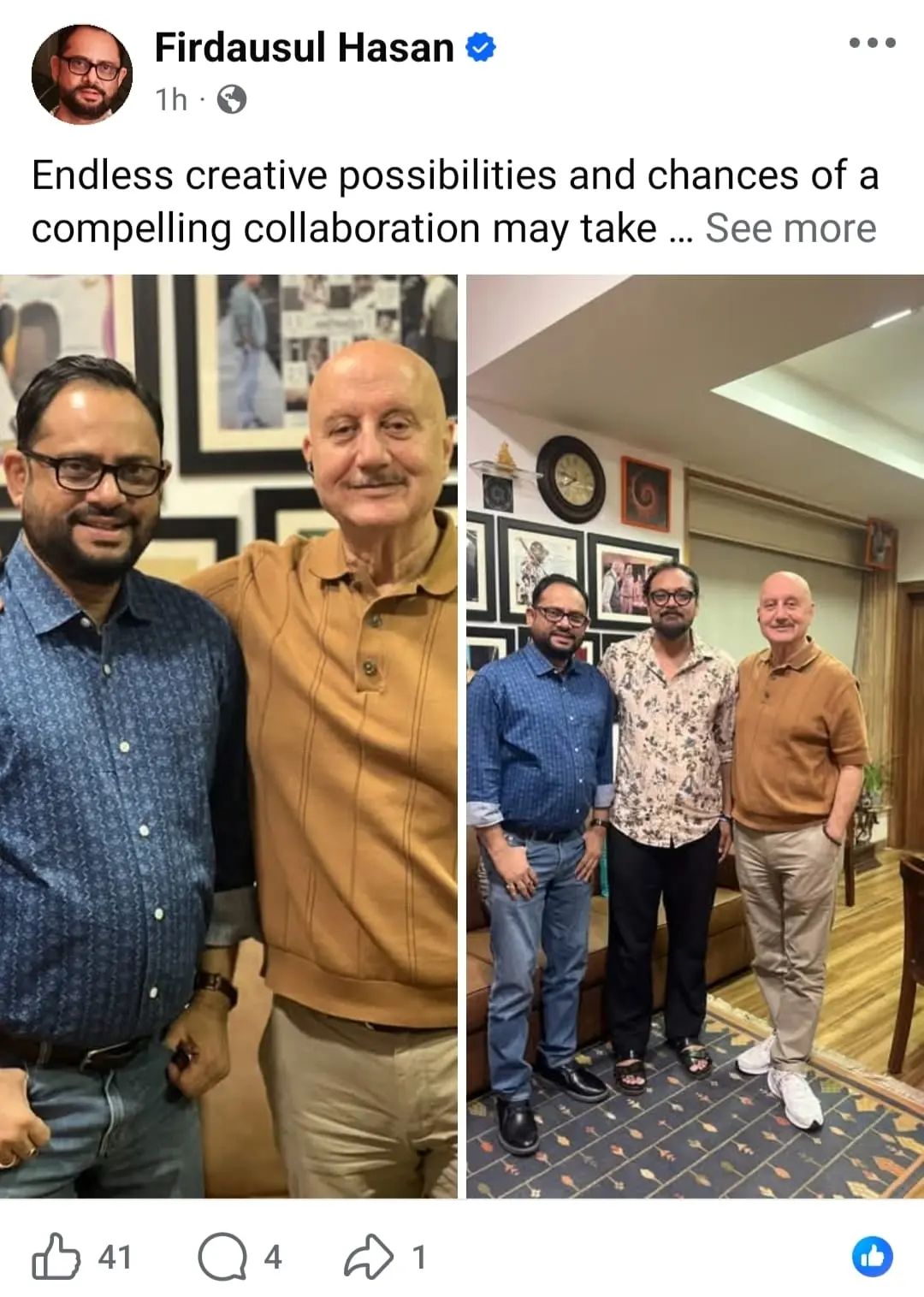 শুধুই ফিল্ম ফেডারেশন অফ ইন্ডিয়ার সভাপতি নন, টলিপাড়ার প্রথম সারির প্রযোজকদের মধ্যে অন্যতম ফিরদৌসুল হাসান। বহু বছর ধরেই তাঁর প্রযোজনায় বাংলা ইন্ডাস্ট্রি তথা দর্শক পেয়েছে রুচিসম্মত সব ছবি, যা দর্শককে আনন্দ দেওয়ার পাশাপাশি ভাবিয়েছে। ছবি শেষ হওয়ার পরেও ছড়িয়ে দিতে পেরেছে চিন্তার অনুরণন। গত বছরের পুজোতেই মুক্তি পেয়েছিল ফিরদৌসুল হাসান প্রযোজিত ছবি 'যত কাণ্ড কাকলকাতাতেই'। তারপর এই বছর তাঁর প্রযোজনায় মুক্তির অপেক্ষায় তিন তিনটে বাংলা ছবি ‘কর্পূর’, ‘শেকড়’ এবং ‘উইঙ্কল টুইঙ্কল’ -যেসব ছবির পরিচালক যথাক্রমে অরিন্দম শীল, ব্রতী বসু এবং সৃজিত মুখোপাধ্যায়। আর এহেন ব্যস্ততার ফাঁকেও মুম্বই গিয়ে অনুপম খেরের সঙ্গে একাধিক বৈঠক সেরে ফেলেছেন ফিরদৌসুল। আর সেসবের ছবি সদ্য তিনি পোস্ট করেছেন সমাজমাধ্যমেও।