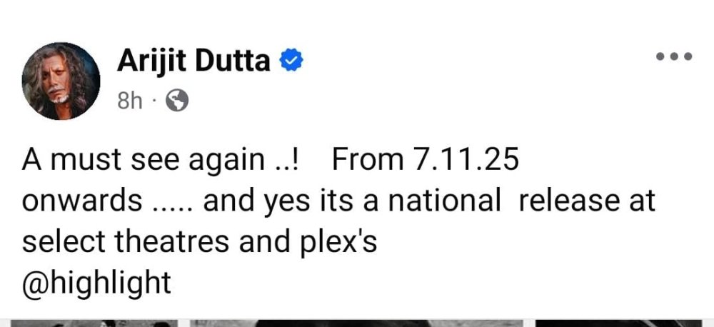 অরিজিৎ দত্ত নিজের ফেসবুক পোস্টে লেখেন, “অবশ্যই বড়পর্দায় ফের দেখা উচিত এই ছবি... ৭ নভেম্বর থেকে বড়পর্দায় মুক্তি পাবে এই ছবি... আর হ্যাঁ, সারা দেশ জুড়েই মুক্তি পাবে এই ছবি, তবে হ্যাঁ নির্বাচিত কিছু প্রেক্ষাগৃহে।” স্বভাবতই অরিজিৎ দত্তের এই ঘোষণা ঘিরে উত্তেজনা ছড়িয়েছে চলচ্চিত্রপ্রেমীদের মধ্যে। আজকাল ডট ইন-কে এ ব্যাপারে অরিজিৎ জানিয়েছেন, কলকাতা আন্তর্জাতিক ফিল্ম ফেস্টিভ্যালে এই ছবি প্রদর্শিত হবে, সেইজন্য তাঁদের তরফে শর্মিলা ঠাকুরকে আমন্ত্রণ জানানো হয়েছে। তিনি আসবেন। তার আগের দিন প্রিয়া-তে এই ছবির মুক্তি। এখানেও তাঁর আসার কথা।” কথাশেষে তাঁর সংযোজন, “দর্শক যদি এই ছবিকে ভালবাসায় ভরিয়ে দেন, তাহলে এক সপ্তাহ কেন, দু-তিন সপ্তাহ চলবে। আমি তো বলব, তার বেশি প্রয়োজন হলেও চলবে। দেখা যাক!”