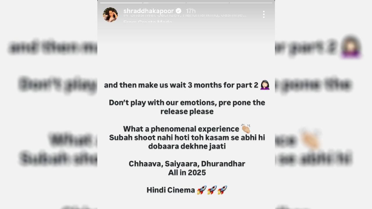 বক্স অফিসে সদ্য মুক্তি পাওয়া ছবি 'ধুরন্ধর' যেন আক্ষরিক অর্থেই ঝড় তুলেছে, আর সেই ঝড়ের আঁচ পৌঁছেছে বলিউড অভিনেত্রী শ্রদ্ধা কাপুরের মন পর্যন্ত। ছবিটি দেখার পর তাঁর এতটাই ভাল লেগেছে যে এখন আর তিনি কিছুতেই অপেক্ষা করতে রাজি নন। একপ্রকার নাছোড়বান্দা হয়ে ছবির পরিচালক আদিত্য ধরকে সোশ্যাল মিডিয়ার মাধ্যমে অনুরোধ করেছেন ছবির সিক্যুয়েল অর্থাৎ 'ধুরন্ধর: পার্ট ২ – রিভেঞ্জ'-এর মুক্তির দিনক্ষণ খানিকটা এগিয়ে আনার জন্য।