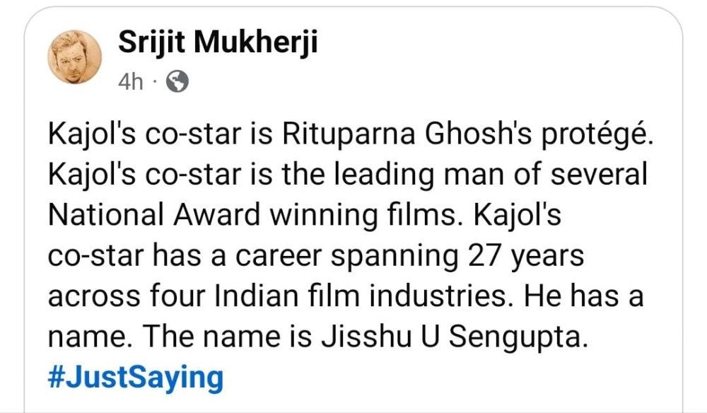 কাজলের সহ-অভিনেতা ঋতুপর্ণ ঘোষের নায়ক। জাতীয় পুরস্কারজয়ী একাধিক ছবির মুখ্য অভিনেতা। হিন্দি, বাংলা, তেলুগু, মালয়ালম— চারটে ইন্ডাস্ট্রিতে দাপটের অভিনয়। তাঁর ২৭ বছরের দীর্ঘ কেরিয়ার। তাঁর নামটা হল—যিশু সেনগুপ্ত।