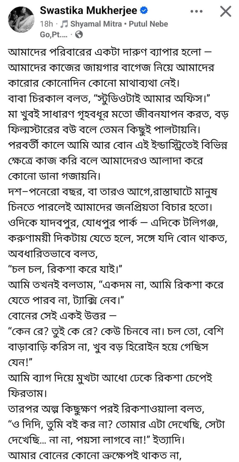 ফেসবুকে স্বস্তিকা লিখেছেন,