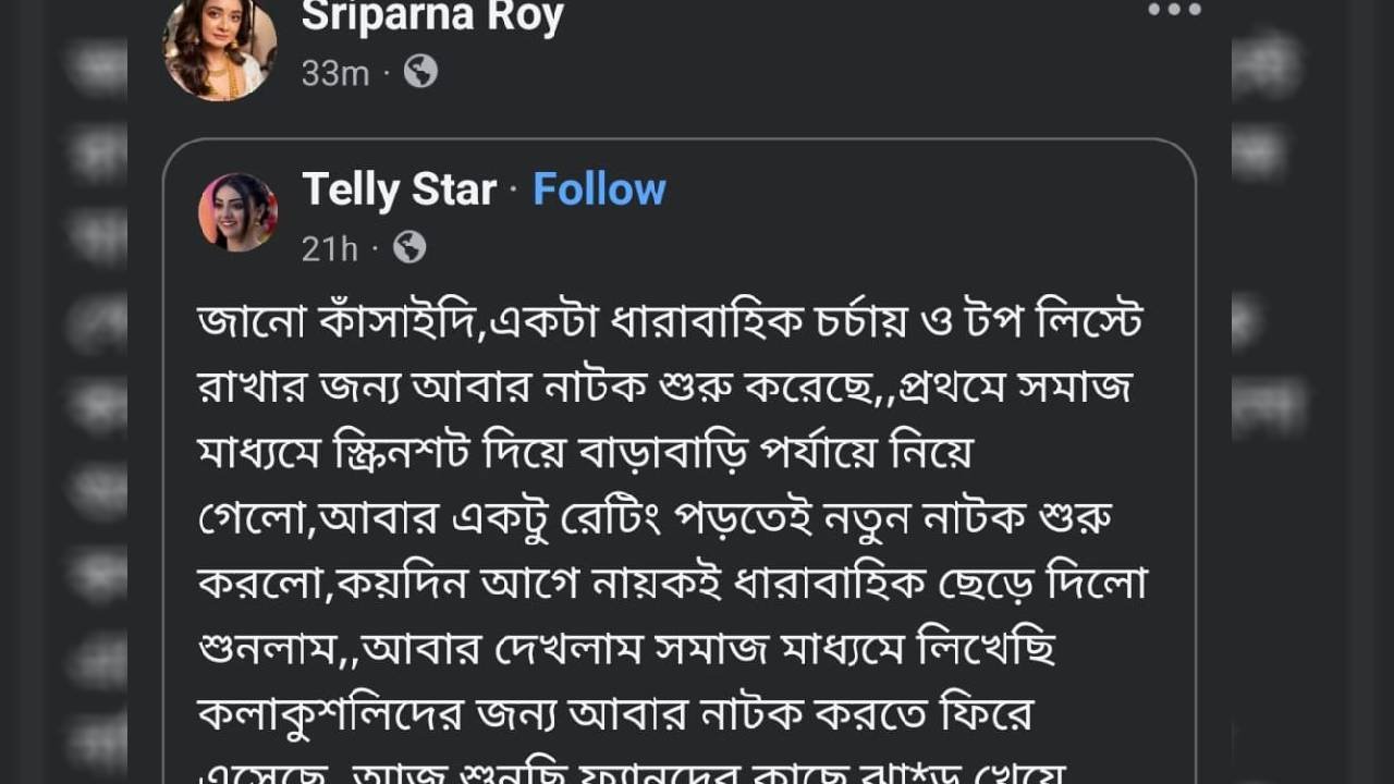 সেই পোস্টে লেখা, 'জানো কাঁসাইদি,একটা ধারাবাহিক চর্চায় ও টপ লিস্টে রাখার জন্য আবার নাটক শুরু করেছে, প্রথমে সমাজমাধ্যমে স্ক্রিনশট দিয়ে বাড়াবাড়ি পর্যায়ে নিয়ে গেল।আবার একটু রেটিং পড়তেই নতুন নাটক শুরু করল,কয়দিন আগে নায়কই ধারাবাহিক ছেড়ে দিল শুনলাম,আবার দেখলাম সমাজমাধ্যমে লিখেছে কলাকুশলীদের জন্য আবার নাটক করতে ফিরে এসেছে। আজ শুনছি ফ্যানদের কাছে ঝাড় খেয়ে নায়িকাই ধারাবাহিক ছাড়ছে। বলছি রেটিং বাড়ানো জন্য ওরা আর কত কাঠিবাজি করবে, মা ছাড়া লক্ষী কিন্তু সবটা দেখছে,এবার তোমার বিয়ে নীলুর সাথে দিয়েই ছাড়ব।'