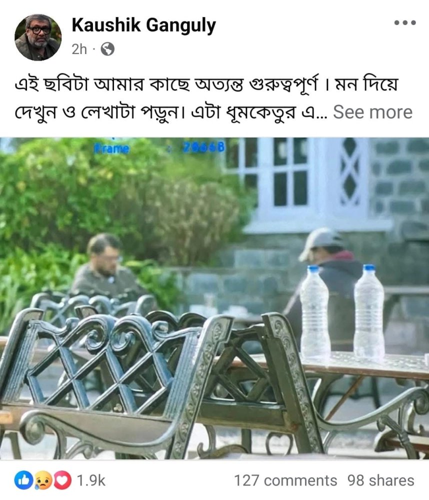 এহেন আনন্দের আবহে সমাজমাধ্যমে কৌশিক গাঙ্গুলির ‘ধূমকেতু’ সংক্রান্ত একটি পোস্ট পড়ে চমকে উঠেছেন অনেকে। যা পড়ে অনেকের ‘গায়ে কাঁটা দিচ্ছে’। ‘ধূমকেতু’ ছবির একটি দৃশ্যের শটের ছবির সঙ্গে এক লম্বা লেখা লিখেছেন পরিচালক। জানিয়ে রাখা ভাল, সেই পোস্ট এই ছবি নয়, সংক্রান্ত বক্স অফিস কালেকশন নয়, বরং ইঙ্গিত দিচ্ছে অন্য কিছুর... কারণ এই ছবি পোস্ট করতে গিয়ে শিউরে উঠেছেন খোদ কৌশিক গাঙ্গুলিও!