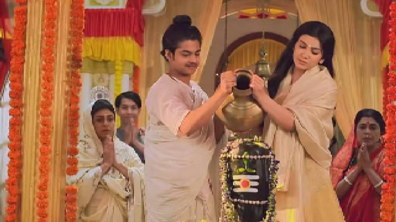 এই প্রশ্নের উত্তর মেলার আগেই নাটোর রাজবাড়িতে এল এক আগুন্তক! ভবানী তার গর্ভের সন্তান ও নাটোরবাসীদের জন্য শিবপুজোর আয়োজন করে। গাজন উৎসবের পর শিবের মাথায় দুধ ঢালার সিদ্ধান্ত নেয় সে। এদিকে, ভবানীর চোখের আড়ালে তার বিরুদ্ধে চক্রান্ত চলে। সমস্ত দুধের কলসিতে কালি মিশিয়ে দেওয়া হয়। শিবপুজো করতে এসে তো অবাক ভবানী! ভগবানের পুজোয় এরকম হবে, আশা করেনি সে। নিরুপায় হয়ে চোখে জল আসে তার।