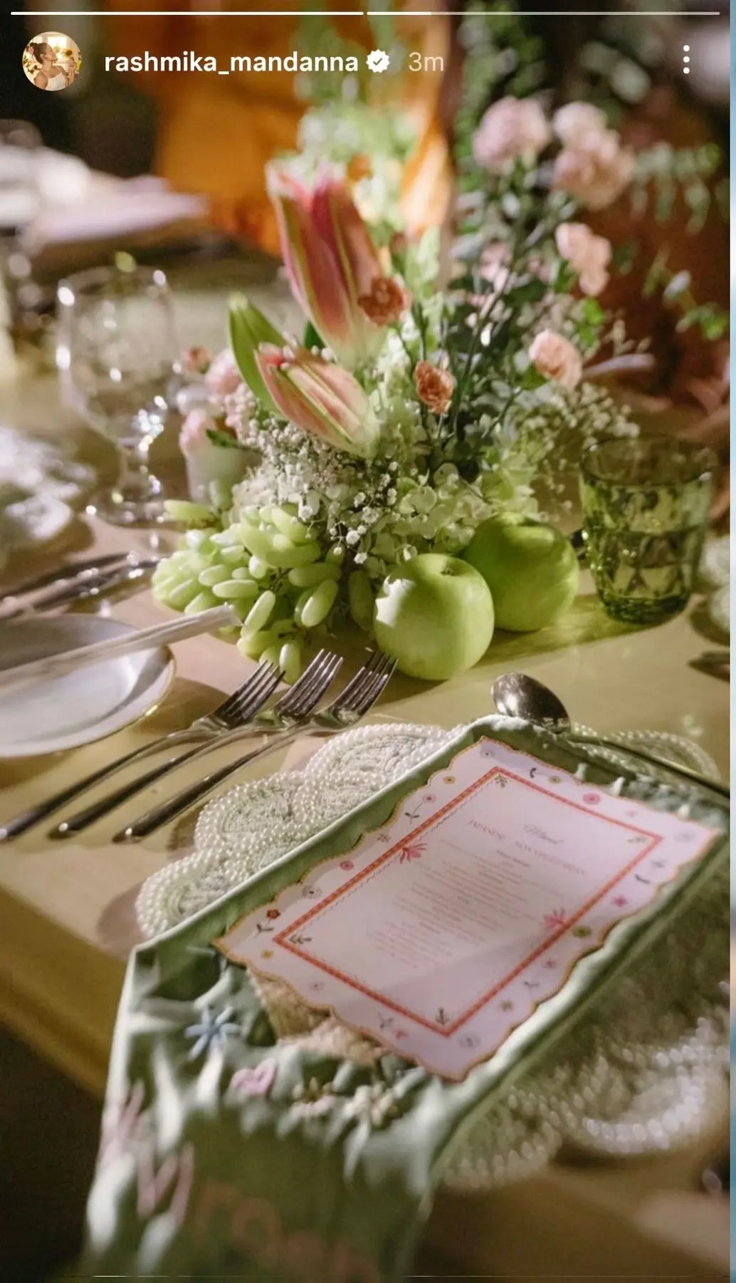 সোমবার, ২৩ ফেব্রুয়ারি রশ্মিকা মন্দানা এবং বিজয় দেবেরাকোন্ডা ইনস্টাগ্রামে তাঁদের বিয়ের বিভিন্ন অনুষ্ঠানের ঝলক পোস্ট করেছেন। সেখানেই দেখা যাচ্ছে, ধীর গতিতে হলেও তাঁদের বিয়ের আগে বিভিন্ন অনুষ্ঠান শুরু হয়ে গিয়েছে। বিজয় তাঁর ইনস্টাগ্রাম স্টোরিতে এদিন একগুচ্ছ ছবি শেয়ার করেছেন। যেখানে পুলের ধারে তাঁদের মজা করতে দেখা গিয়েছে। পুল ভলিবল খেলায় মেতে উঠেছিলেন এই তারকা জুটি তাঁদের বিয়ের আগে। সঙ্গে একটি টেবিলে বেশ কিছু ফলের ছবিও পোস্ট করেছেন। জাপানিজ ডিনারের আয়োজন ছিল যে এদিন তার ঝলকও পোস্ট করেছেন তাঁরা।