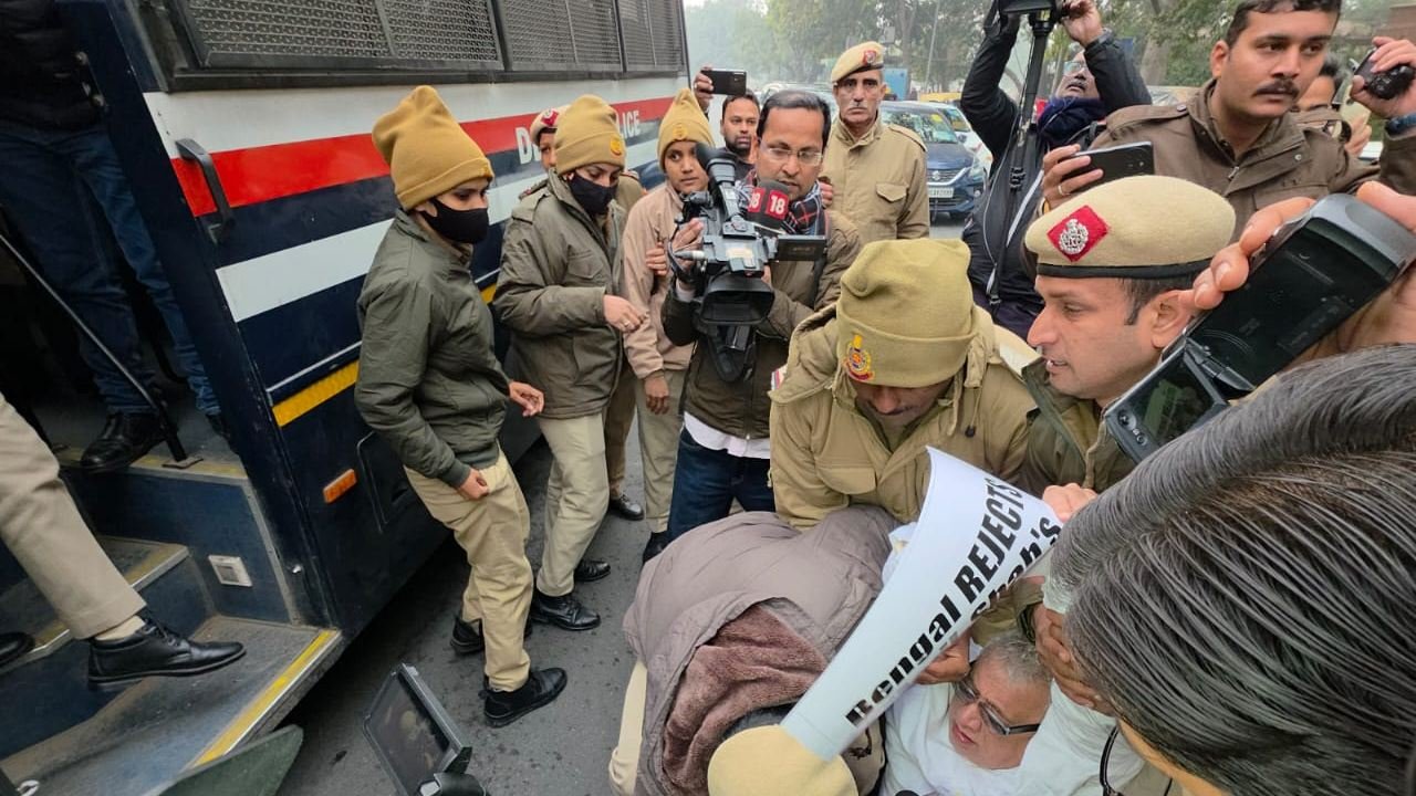 আজকাল ওয়েবডেস্ক: দিল্লিতে ধুন্ধুমার। তৃণমূল কংগ্রেসের সাংসদের শান্তিপূর্ণ ধর্নার মাঝেই উপস্থিত পুলিশ। জোর করে সাংসদদের সরিয়ে দেওয়ার চেষ্টা করতেই শুরু হয় ধস্তাধস্তি।