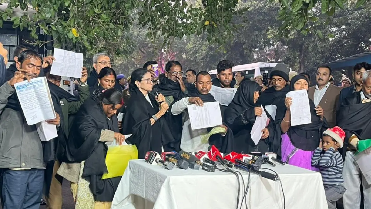 বাংলার মুখ্যমন্ত্রী, তৃণমূল কংগ্রেস সুপ্রিমো মমতা ব্যানার্জি বিকেল চারটা নাগাদ পৌঁছে যান নির্বাচন সদনে। সঙ্গে দলের সর্বভারতীয় সাধারণ সম্পাদক অভিষেক ব্যানার্জি, সাংসদ কল্যাণ ব্যানার্জি এবং এসআইআর-এ ক্ষতিগ্রস্ত সদস্যদের কয়েকজন।