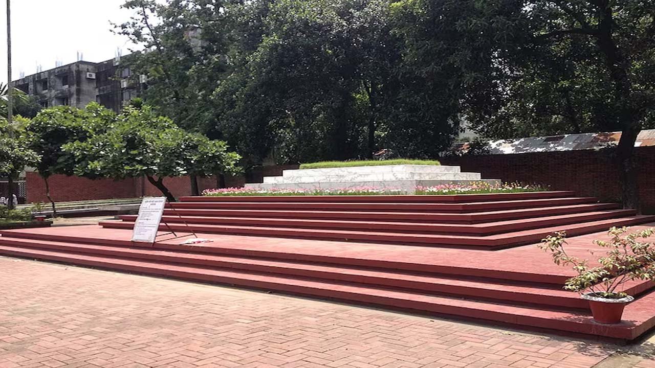 ঢাকা বিশ্ববিদ্যালয়ের কেন্দ্রীয় মসজিদের পাশে নজরুল ইসলামের সমাধি।