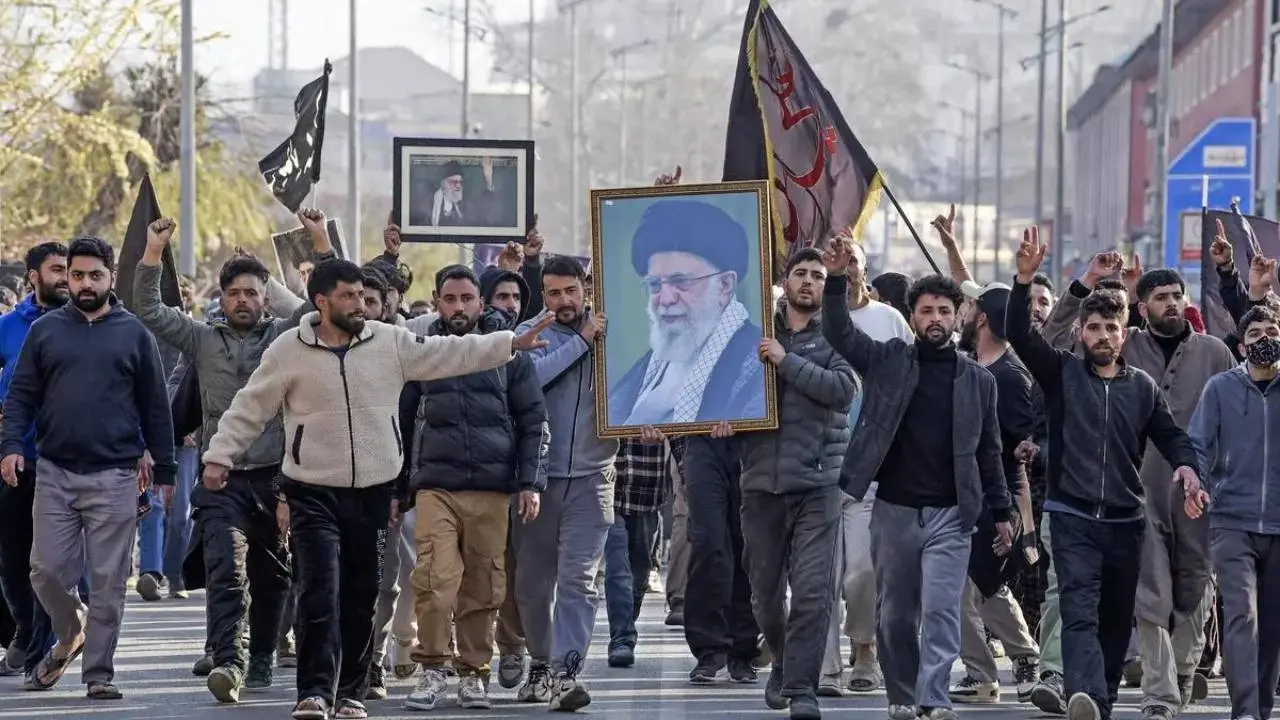 আয়াতোল্লা আলি খামেনেইয়ের মৃত্যুতে বিক্ষোভ-প্রতিবাদ শ্রীনগরে। ছবি: সংগৃহীত।