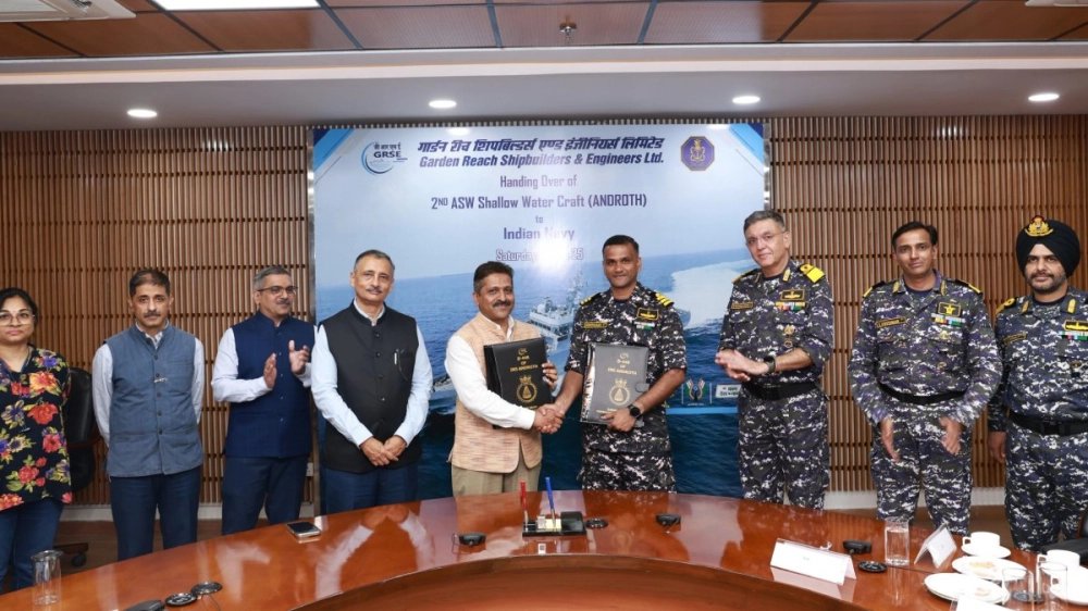 আজকাল ওয়েবডেস্ক: ভারতের সামুদ্রিক প্রতিরক্ষার ইতিহাসে নতুন মাইলফলক রচনা করল গার্ডেনরিচ শিপবিল্ডার্স অ্যান্ড ইঞ্জিনিয়ার্স (জিআরএসই) লিমিটেড। ১৩ সেপ্টেম্বর শনিবার জিআরএসই ভারতীয় নৌবাহিনীর হাতে তুলে দিল আধুনিক প্রযুক্তিতে নির্মিত অগভীর জলের সাবমেরিন-বিধ্বংসী যুদ্ধজাহাজ অ্যান্ড্রোথ (Androth)। এটি আটটি এএসডব্লিউ এসডব্লিউসি (Anti-Submarine Warfare Shallow Water Craft)-এর সিরিজের দ্বিতীয় জাহাজ।
