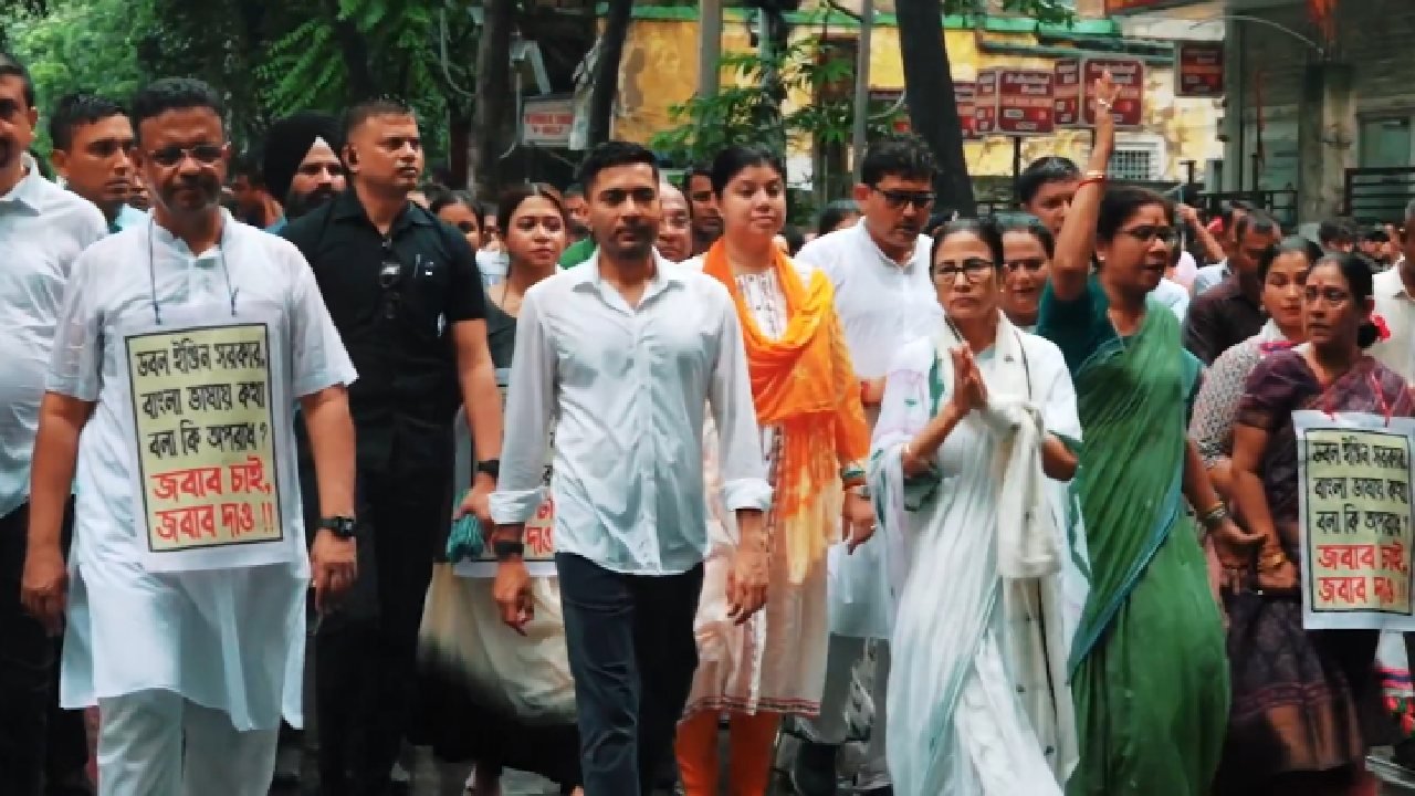 ৪ নভেম্বর মিছিল তৃণমূলের। ৪ নভেম্বর থেকে এনুমারেশন ফর্ম নিয়ে ভোটারদের বাড়িতে বাড়িতে যাবেন বিএলওরা। মঙ্গলবার দুপুর দেড়টার সময়ে রেড রোডে বিআর আম্বেদকরের মূর্তির সামনে কলকাতা সহ জেলার নেতা-কর্মীদের জমায়েত করার নির্দেশ দেওয়া হয়েছে। দুপুর আড়াইটে থেকে শুরু হবে মিছিল। আম্বেদকর মূর্তির সামনে থেকে মিছিল শুরু হয়ে পৌঁছবে জোড়াসাঁকো ঠাকুরবাড়ি পর্যন্ত। উল্লেখ্য, শুক্রবার দলের কর্মীদের নিয়ে ভার্চুয়াল বৈঠক করেছেন অভিষেক।