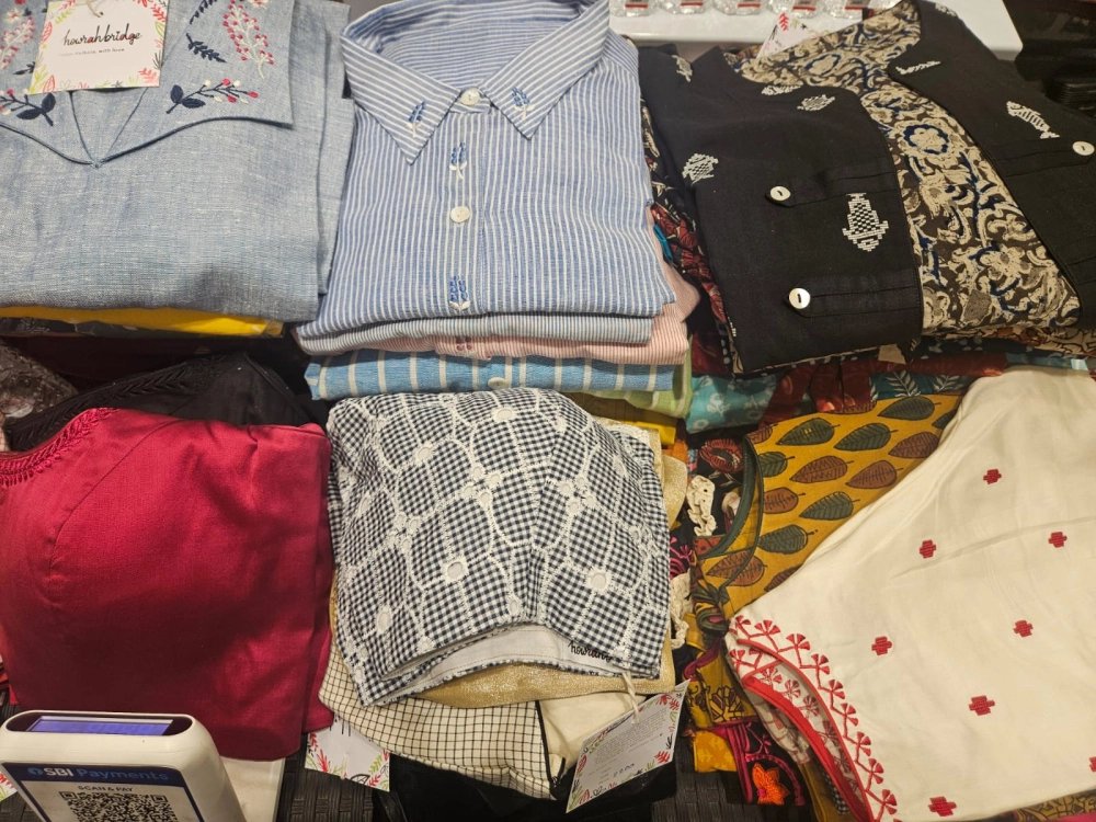 অন্য দিকে, ‘হাওড়া ব্রিজ’-এ মিলছে সুতির তৈরি অভিনব ডিজাইনের সব ব্লাউজ। শাড়ির সম্ভারও চোখে পড়ার মতো। মালিক শম্পা দত্তগুপ্তের কথায়, “আমি চাই, আমাদের পোশাকের মাধ্যমে কলকাতার নাম যেন সারা বিশ্বে ছড়িয়ে পড়ে। তাই এই ব্র্যান্ডের নাম রাখা হয়েছে হাওড়া ব্রিজ।”