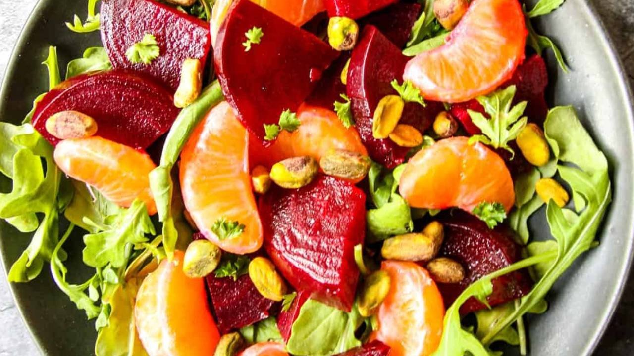 উপকরণ: বিট ১টি, কমলালেবু ১টি, পেঁয়াজ ১/২টি, অলিভ অয়েল ১ টেবিল চামচ, লেবুর রস ১ চা চামচ, মধু ১ চা চামচ, নুন স্বাদমতো, পুদিনা পাতা সামান্য
