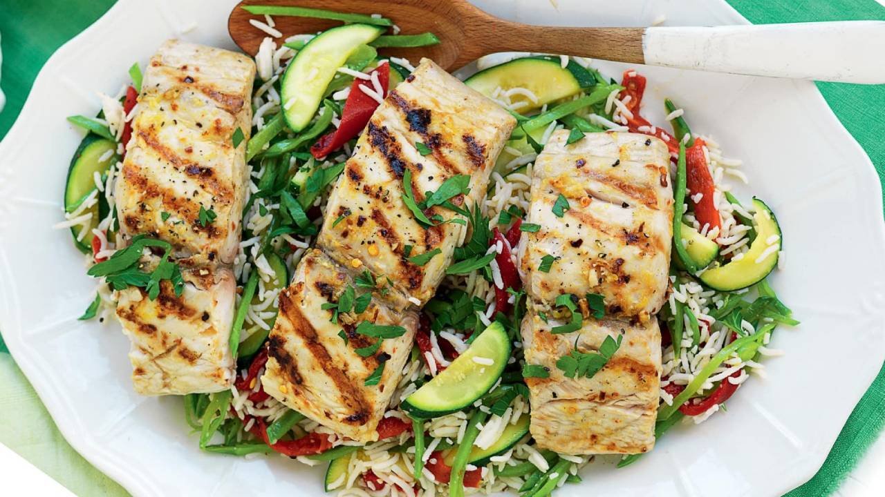 উপকরণ: রুই, ভেটকি বা বাসা মাছের ফিলে ২০০ গ্রাম, অলিভ অয়েল ১ টেবিল চামচ, নুন ১/২ চা চামচ, গোলমরিচগুঁড়া ১/৪ চা চামচ, রসুন কুচি ১ চা চামচ, লেবুর রস ১ টেবিল চামচ, লেটুস পাতা ১ কাপ, টমেটো ১টি, শসা ১টি, গাজর ১/২টি