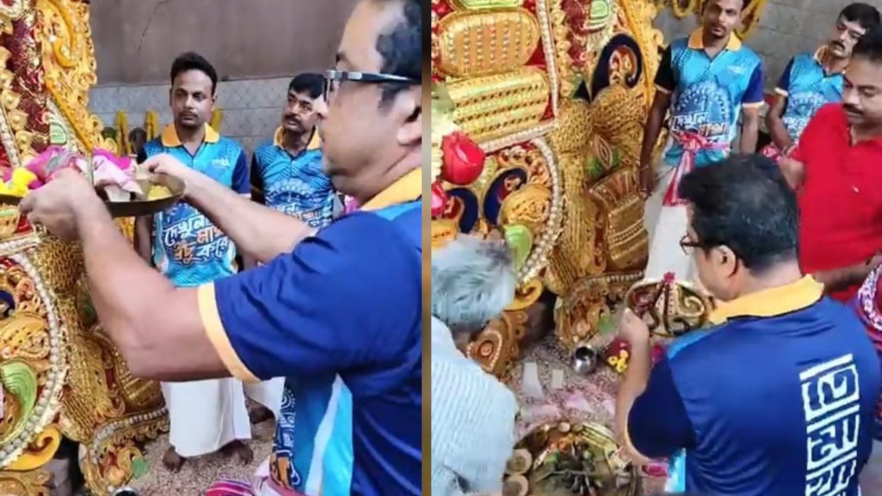 মিল্টন সেন, হুগলি: পুরনো সেই রীতি আজও অব্যাহত। আজও দশমীতে মিষ্টিমুখ করার প্রচলিত প্রথা, এখানে নেই। চন্দননগর তেমাথা শিবমন্দির সার্বজনীনের প্রতিমা বরণ হয় পা ছুঁয়ে। শাড়ি পড়ে, বরণ করেন ছেলেরা। শোভাযাত্রায় চন্দননগরের বিশাল আকৃতির জলভরা সন্দেশ দেওয়া হয় রাণীমার হাতে।