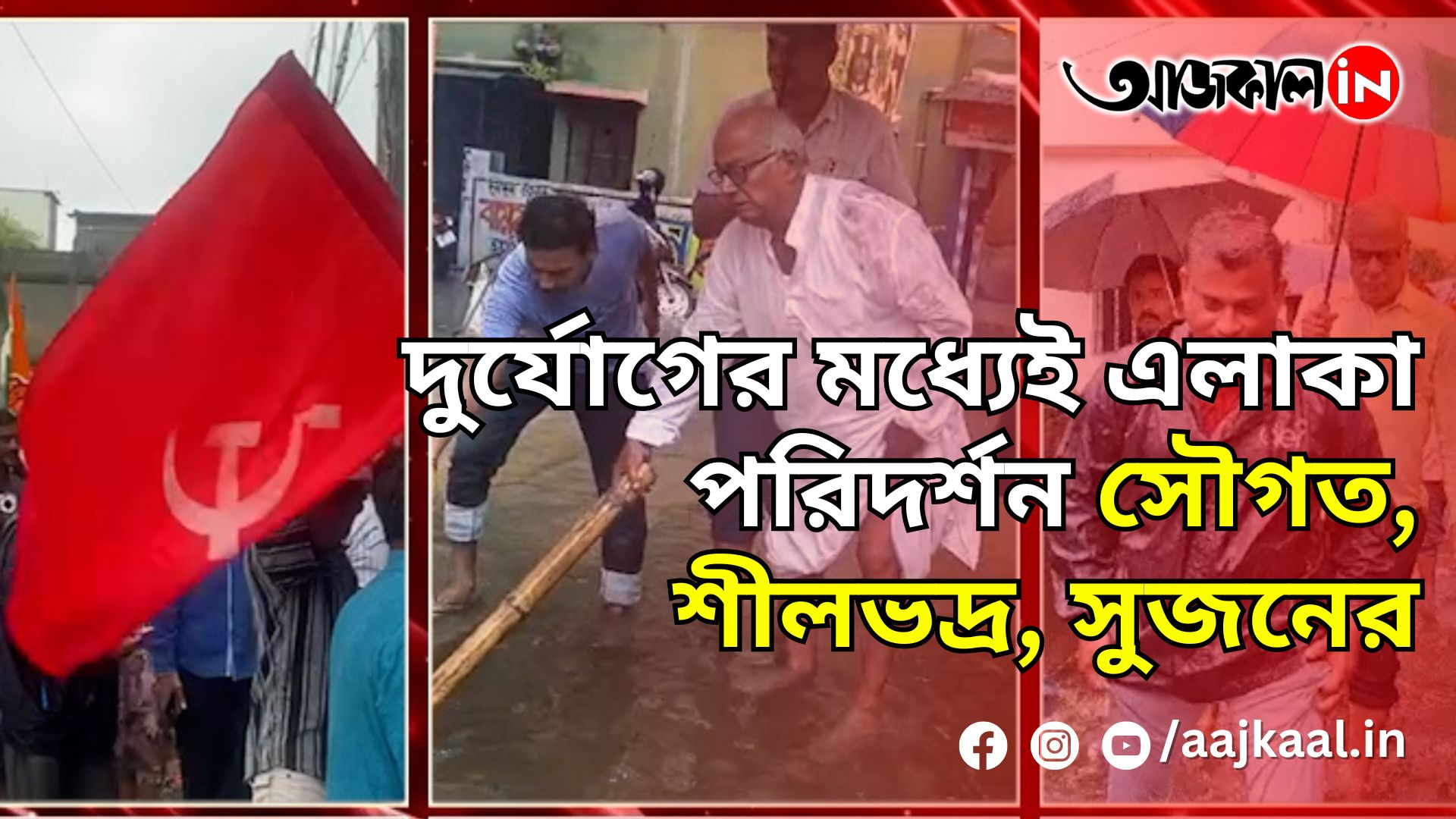 দুর্যোগের মধ্যেই এলাকা পরিদর্শন সৌগত, শীলভদ্র, সুজনের...