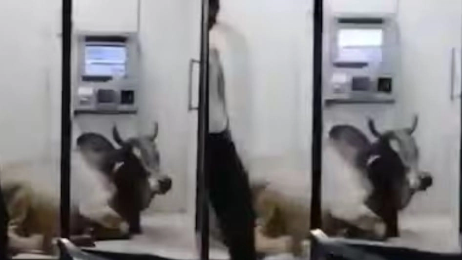 প্রচণ্ড গরমে এসি-র হাওয়া খেতে এটিএম-এ ঢুকে পড়ল ষাঁড়! বাইরে অপেক্ষায় গ্রাহক, নেটপাড়ায় চরম হাসির রোল...