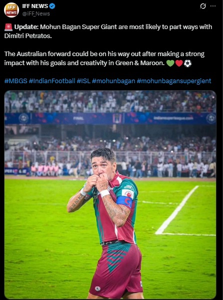 আজকাল ওয়েবডেস্ক: আহাল এফসির বিরুদ্ধে মঙ্গলবার ঘরের মাঠে হারতে হয়েছে মোহনবাগানকে। কিন্তু ম্যাচের ফলাফল ছাড়াও আরও একটা বিষয় চোখে পড়েছে বাগান সমর্থকদের। আহাল এফসির বিরুদ্ধে ম্যাচের শেষে কোচ মলিনার সঙ্গে কোনও একটা বিষয়ে তর্কে জড়িয়ে পড়েছিলেন বাগানের প্রাণভোমরা দিমিত্রি পেত্রাতোস। তারপরেই বৃহস্পতিবার রাতে আচমকাই জল্পনা ছড়িয়ে পড়ে যে মোহনবাগান ছাড়তে চলেছেন দিমি। বৃহস্পতিবার রাতে ইনস্টগ্রামে দিমিত্রি মোহনবাগানের জার্সি পরে দুটি ছবি পোস্ট করেন। একটিতে দেখা যায়, তিনি সমর্থকদের দিকে হাত তুলে ধন্যবাদ জানাচ্ছেন। অন্য আর একটি ছবি গত ম্যাচের।