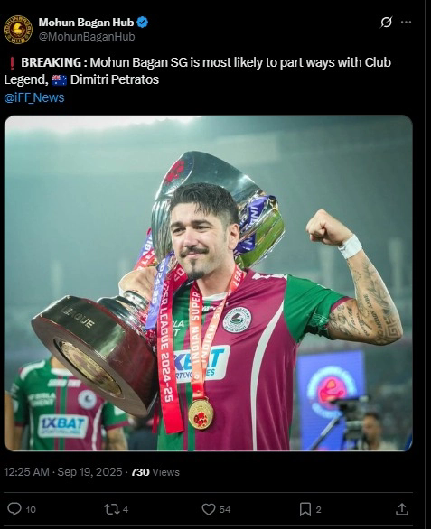 তবে এখন ট্রান্সফার উইন্ডো বন্ধ হয়ে গিয়েছে। এখন কি পেত্রাতোসের মতো অভিজ্ঞ এবং মোহনবাগানের পালস বোঝা ফুটবলার সরে যাবেন? এবার তিনি যখন দমদম বিমানবন্দরে পা রেখেছিলেন, তখন মোহনবাগান সর্থকরা কাঁধে তুলে নিয়েছিলেন তাঁকে। মোহনবাগানের প্রাণভোমরা তিনি। মরশুম শুরুর আগে তিনি নিশ্চয় এমন ভাবে দলকে সমস্যায় ফেলে চলে যাবেন না। বিষয়টা পুরোটাই জল্পনা হয়তো। কিন্তু দিমির পোস্ট এবং তাঁকে কেন্দ্র করে জল্পনা কলকাতার ফুটবলপ্রেমীদের মনে আলোড়ন তৈরি করেছে।