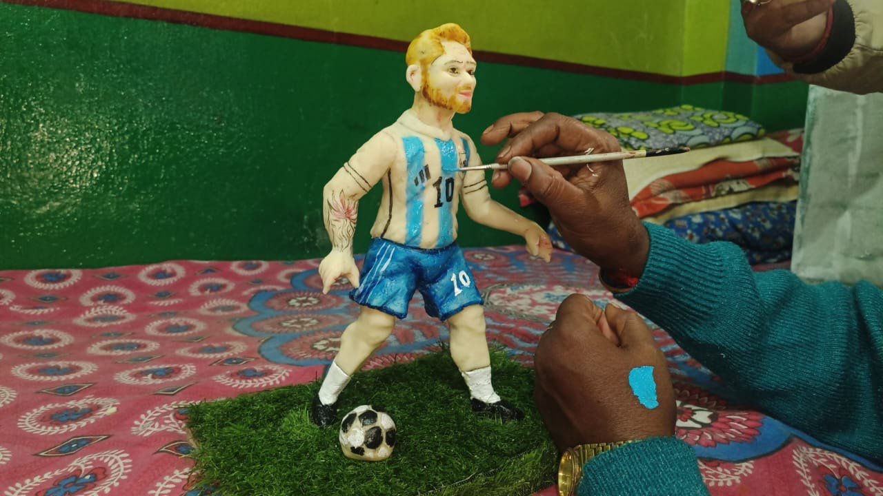 এদিকে, মেসির জন্য বিশেষ চমক হুগলির রিষড়ার ফেলু মোদকেরও। ফুটবলের রাজপুত্রের জন্য তৈরি হয়েছে বিশেষ নলেন গুড়ের সন্দেশ। ওই সন্দেশ হচ্ছে আদতে মেসিরই মূর্তি।