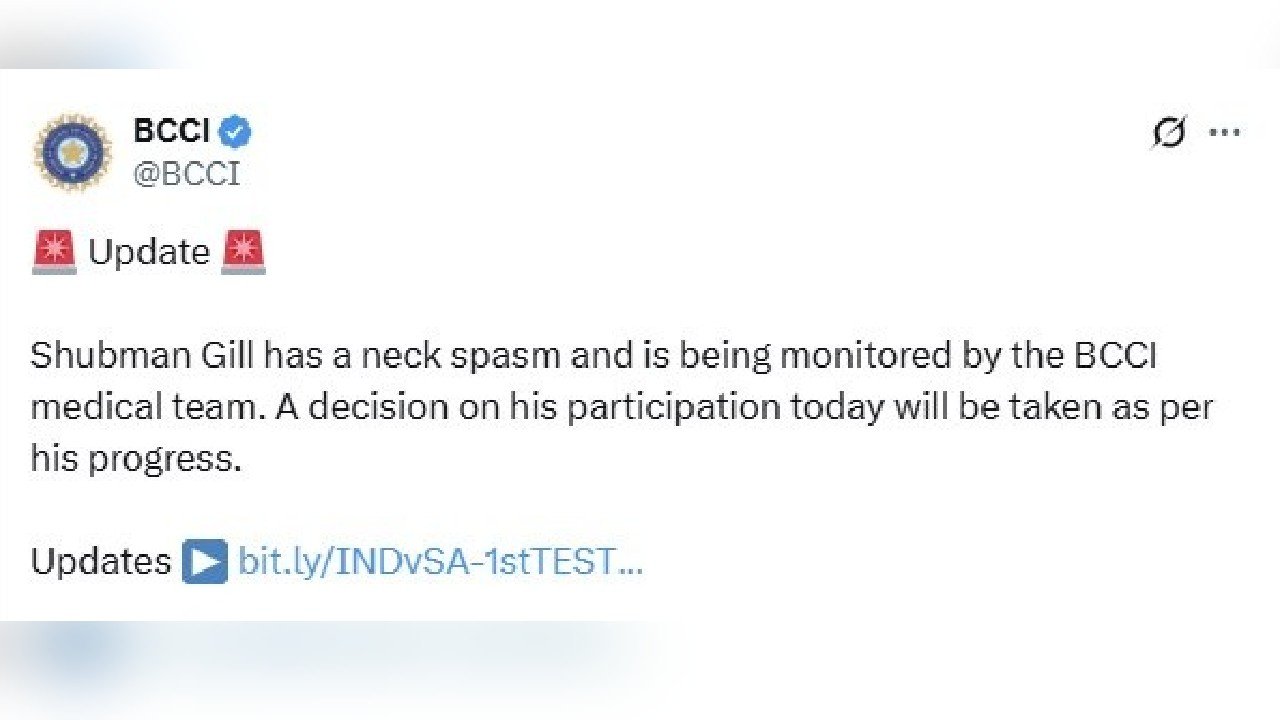 বোর্ডের বিবৃতিতে বলা হয়েছে, ‘শুভমন গিলের নেক স্পাজম হয়েছে এবং তাকে বিসিসিআই মেডিক্যাল টিম পর্যবেক্ষণে রাখছে। আজকে তিনি খেলতে পারবেন কি না, তা তার চিকিৎসার অগ্রগতির ওপর নির্ভর করবে।’