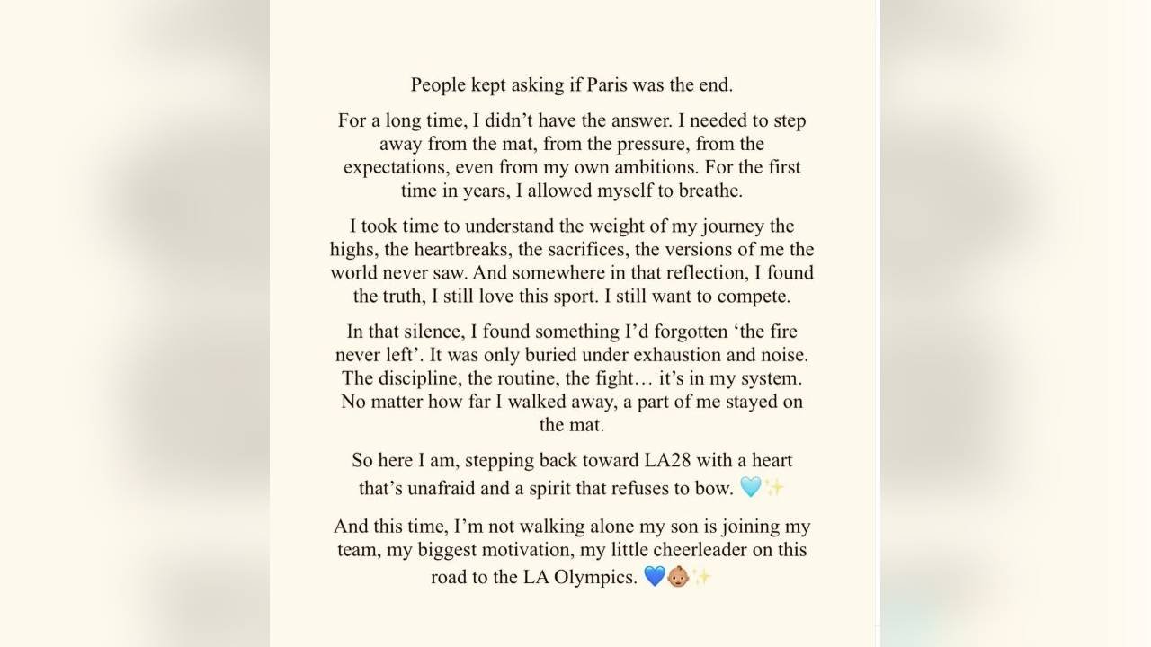 তিনি লিখেছেন, এবার তিনি একা নন, ছেলেকে নিয়েই শুরু হবে নতুন লড়াই, নতুন যাত্রা। ২০১৬ রিও অলিম্পিকে কোয়ার্টার ফাইনালে হাঁটুতে গুরুতর চোট পেয়ে ছিটকে যান ভিনেশ।