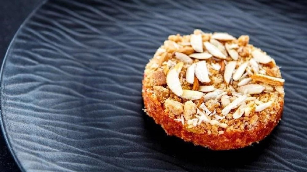 এই পদটি মূলত গাজরের হালুয়ার ওপর বাদামি ক্রাম্বলের আস্তরণ।