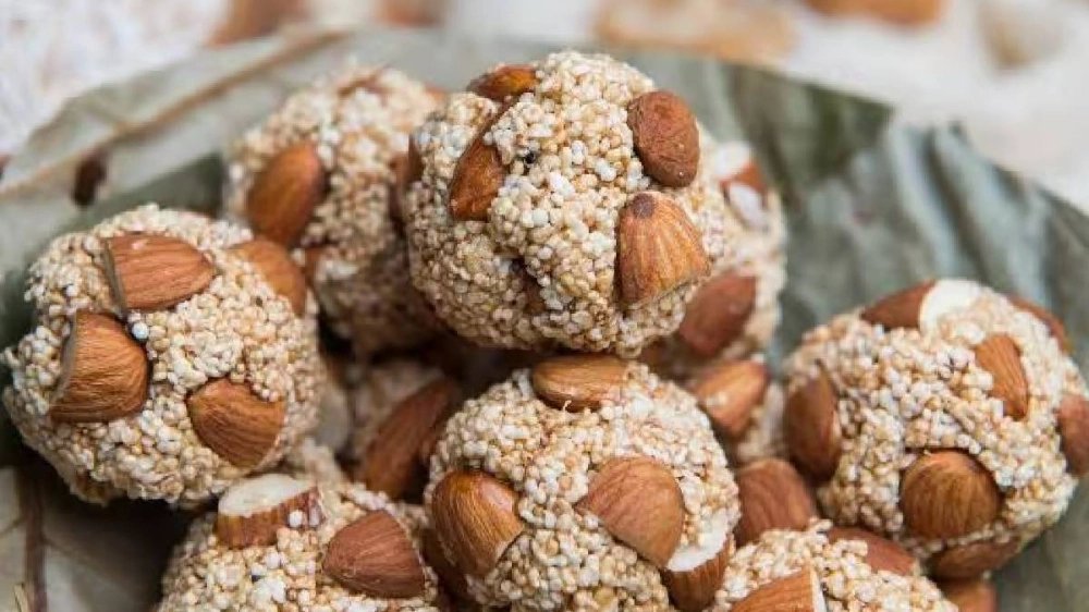উপকরণ: ৫০ গ্রাম ফাঁপানো রাজগিরা, ৫০ মিলি গলানো গুড়, ৩০ গ্রাম বাদামের স্লাইস।
