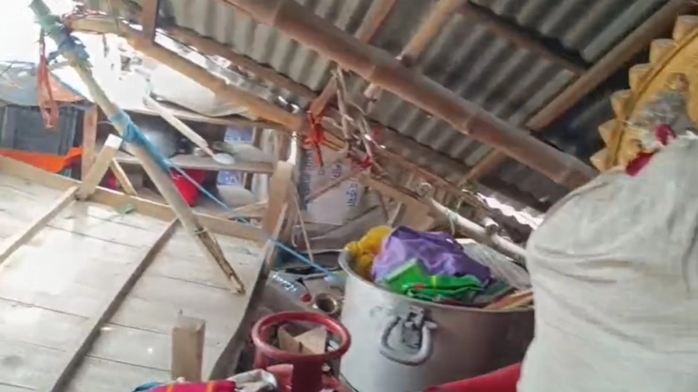 স্থানীয় সূত্রের খবর, শুক্রবার ভোরবেলা হঠাৎ দমকা হাওয়া বইতে শুরু করে, সঙ্গে বৃষ্টি। হঠাৎ টর্নেডোর মত পাক খাওয়া ঝড় এলাকার উপর আছড়ে পরে। তাতেই সব তছনছ। ঝড়ের দাপটে ভেঙে যায় নাড়ুয়া শান্তির মাঠ এলাকার একটি পুজো কমিটির মণ্ডপ। আশেপাশে থাকা বাড়ি ঘর ক্ষতিগ্রস্ত হয়েছে। ভেঙে পড়েছে ইটের দেওয়াল। বাড়ির টিনের চাল উড়ে গিয়েছে।