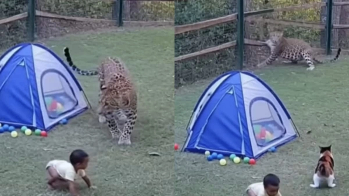 অ্যাকশন মুভি যেন! শিশুকে ছোঁ মারতে গিয়েও পিছপা লেপার্ডের, বাড়ির পোষ্য বিড়ালকে দেখে পড়িমরি ছুট, ভিডিও ভাইরাল