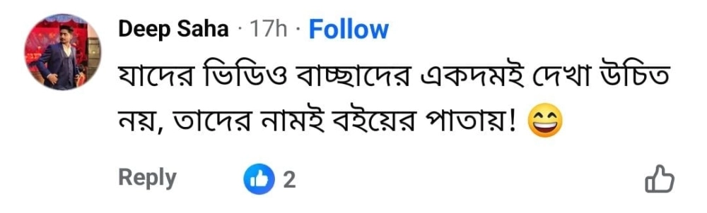 কেউ লিখেছেন, “যাদের ভিডিও বাচ্চাদের একদমই দেখা উচিত নয়, তাদের নামই বইয়ের পাতায়।” আবার আরেকজন লিখেছেন, “লেখাপড়ার মান অতীব খারাপ হচ্ছে দিন দিন...।”, “ গালাগালি দেওয়া মানুষদের নাম বইয়ের পাতায়। সমাজ শেষ।”