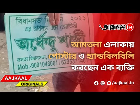 আমতলা এলাকায় পোস্টার ও হ্যান্ডবিলবিলি করছেন এক ব্যক্তি যার নাম অর্ধেন্দু মন্ডল। সেই হ্যান্ড বিলে লেখা রয়েছে ২০২১ বিধানসভা কেন্দ্র নির্বাচনে জ্যোতিষ বিদ্যার মাধ্যমে ভবিষ্যৎ বলে দিয়েছিল সে এবং সেখানে নাম্বারও লেখা রয়েছে। তারপর তার সাথে কথা বলে জানতে পারলাম যে সেই লোকসভা ভোটে ও এ বছর ভবিষ্যৎ বাণী করতে চলেছে। বিট ঘোষণা হলেই তিনি সেই অনুযায়ী এই ভবিষ্যৎ করতে পারবেন বলে তিনি আজকাল ডটইনের মুখোমুখি হয়ে জানান।