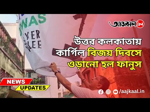 উত্তর কলকাতায় কার্গিল বিজয় দিবসের ২৫ বছর পূর্তি উপলক্ষে ওড়ানো হল ফানুস। হাতে তৈরী এই ১২ ফুটের ফানুসে ফুটে উঠেছে কার্গিল যুদ্ধের জয়ের মুহূর্ত। উত্তর কলকাতার মানিকতলার গোয়াবাগান অঞ্চলের এক বাড়ির ছাদ থেকে উড়ানো হল ফানুসটি। সঙ্গে ছিলেন কার্গিল যুদ্ধে অংশগ্রহণ করা ভারতীয় সেনার অবসরপ্রাপ্ত এক জওয়ানও