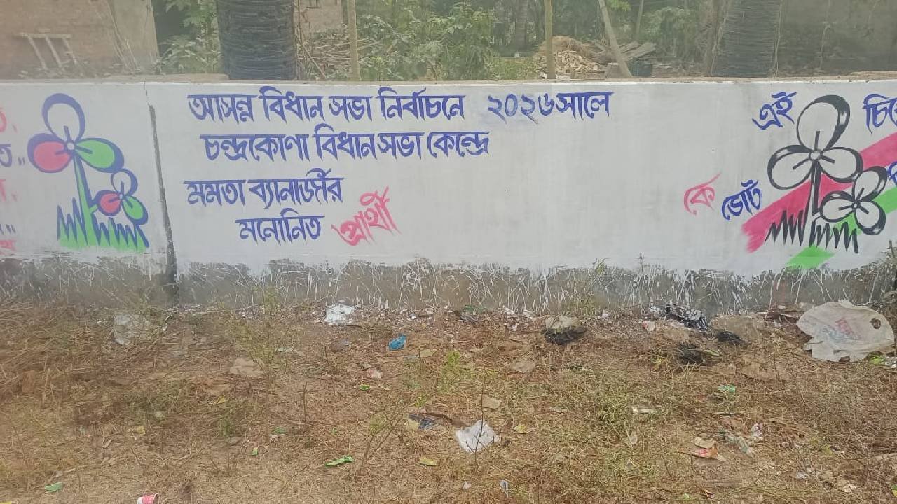 একই সঙ্গে দেওয়াল লিখনের মাধ্যমে রাজ্য সরকারের বিভিন্ন সামাজিক প্রকল্প ও উন্নয়নের কথাও তুলে ধরা হচ্ছে। লক্ষ্মীর ভাণ্ডার, স্বাস্থ্যসাথী-সহ একাধিক সরকারি প্রকল্পের সুবিধা সাধারণ মানুষ পাচ্ছেন বলে দেওয়ালে উল্লেখ করা হয়েছে। এ বিষয়ে গ্রাম পঞ্চায়েতের উপপ্রধান তথা এলাকার তৃণমূল নেতা মনাজুর মোল্লা বলেন, “নির্বাচনের দিনক্ষণ এখনও ঘোষণা না হলেও আমরা প্রচারে এগিয়ে থাকতে চাইছি। প্রার্থী যেই হোক না কেন, জোড়াফুল চিহ্নে ভোট দিয়ে চতুর্থবার মুখ্যমন্ত্রী হিসেবে মমতা ব্যানার্জিকে বিপুল ভোটে জয়ী করাই আমাদের লক্ষ্য। বিজেপি এসআইআর-কে হাতিয়ার করে ভোট বৈতরণী পার হতে চাইছে। কিন্তু সাধারণ মানুষ ইতিমধ্যেই বিষয়টি বুঝে গিয়েছেন।” সব মিলিয়ে, নির্বাচনের আনুষ্ঠানিক ঘোষণা না হলেও দেওয়াল লিখন, ব্যঙ্গচিত্র ও স্লোগানে চন্দ্রকোনার গ্রামাঞ্চলে যে ভোটের হাওয়া বইতে শুরু করেছে, তা স্পষ্ট।